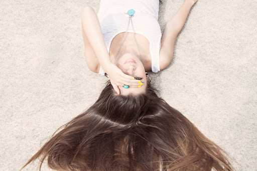 dopo un lungo pomeriggio di divertimento,sdraiata per terra a riposare ti guardo e sorrido