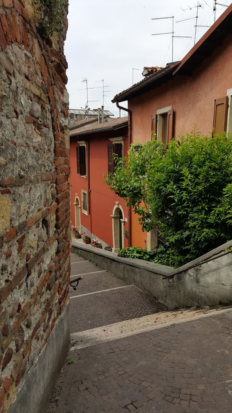 Una scalinata, a Verona, tra case colorate e un vecchio muro, che portano a un posto incantato pieno di ricordi storici
