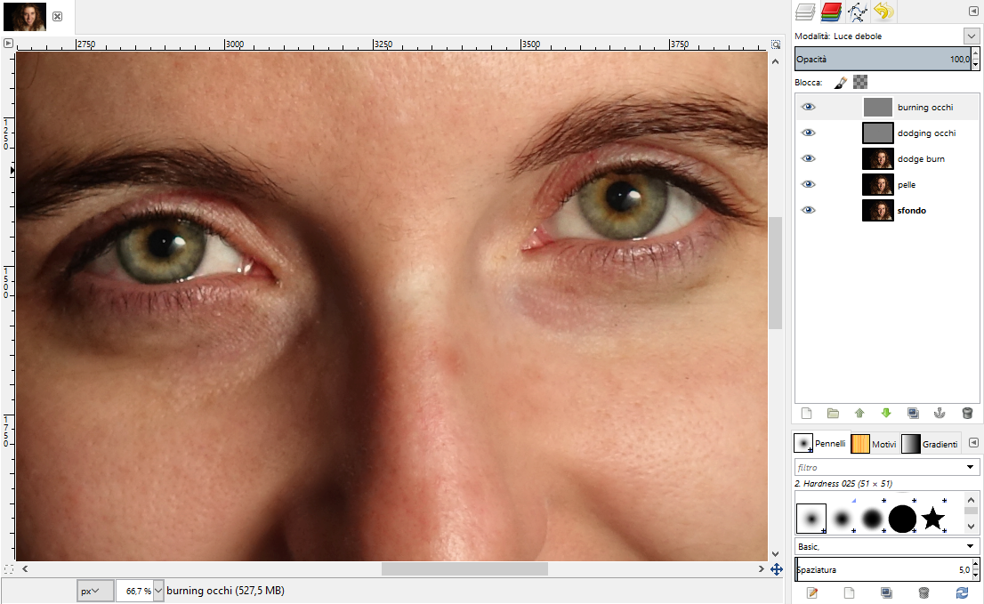 Una buona notizia! Per correggere gli occhi andremo ad utilizzare la tecnica del dodge and burn appena