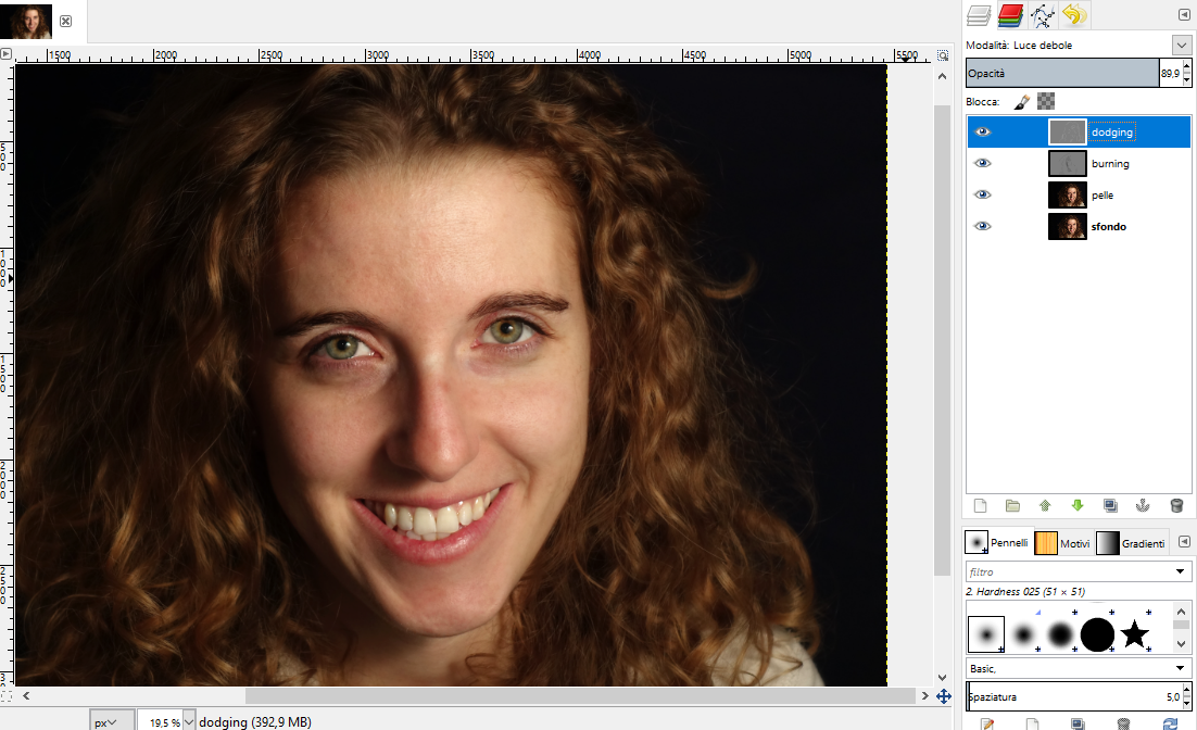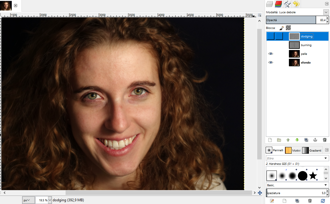 scurirne - burn - altre. Il nostro obiettivo è di ottenere un ritratto più contrastato, con luci e ombre più